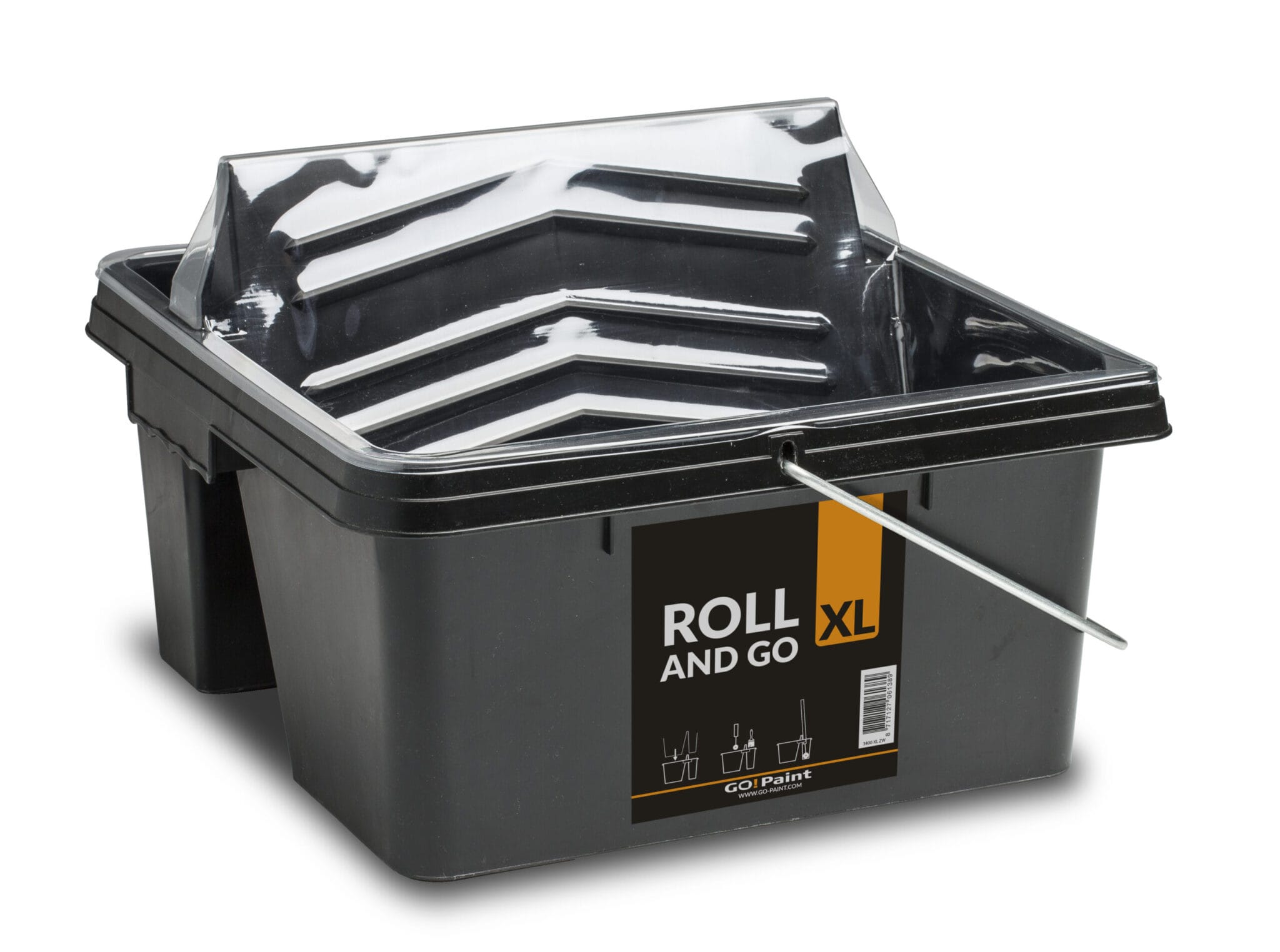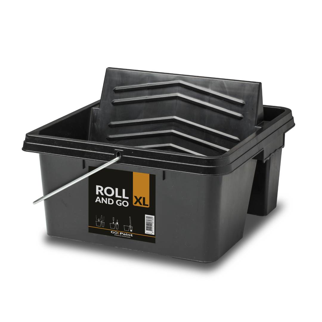 De GoPaint Roll and Go XL is een stabiele verfbak met twee vakken; één voor het rollen van de verf en één voor je overige materiaal. Je neemt alles in één keer mee de ladder of de steiger op. De Roll and Go XL is zo stabiel dat hij niet gaat kiepen als je de roller met een telescoopstok tegen het geïntegreerde rolvlak stevig in de verf werkt.