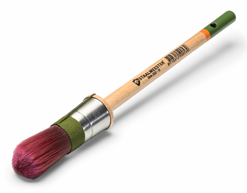 De Patentpuntkwast van deze 2020 serie is voorzien van onze nieuwe 100% synthetische vezel. Bezit alle positieve eigenschappen die u gewend bent van onze andere mix series, maar zonder de varkensharen. Heeft een Inox bus ,een een katoenen touwwoeling, en een beukenhouten steel, herkenbaar in de Staalmeester® kleuren. Uitermate geschikt voor watergedragen verven, en met de nieuwe vezel ook beter geschikt om synthetische lakken te verwerken. Volle doos 6 stuks = 35% korting!