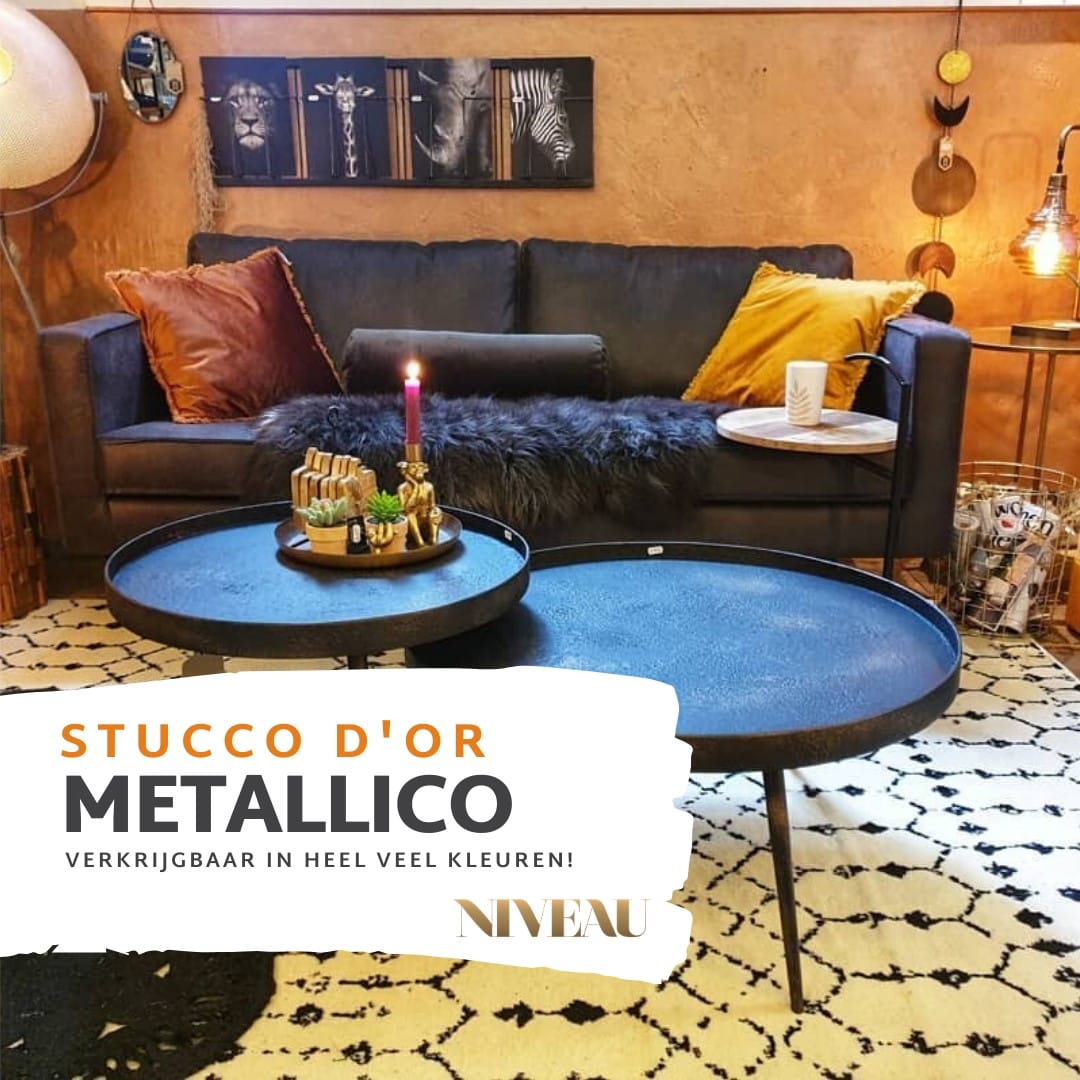 - Voor een egaal metallic resultaat: werk met roller of spuit op vlakke ondergrond; voor effectwerk: experimenteer met blokkwast, doek of spuit.